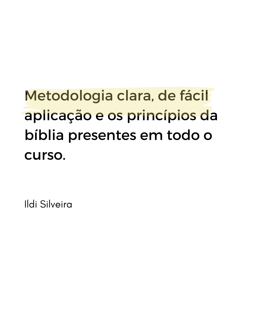 Além disso, preparamos as aulas considerando a agenda corrida e a mente sobrecarregada das pessoas na atualidade. Por isso, as aulas são curtas, direto ao ponto e de fácil entendimento e aplicação. É assistir e já aplicar!